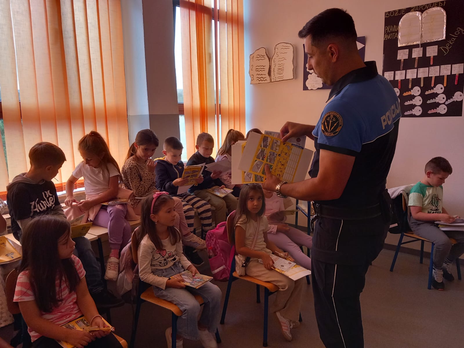 Službenici prometne policije u Tomislavgradu Marija Ledušić i Ale Korić danas su posjetili najmlađe učenike u našoj središnjoj školi kako bi ih podsjetili na osnovna pravila i iznimnu važnost sigurnosti u prometu. Bukovički i crvenički prvaši i drugaši s posebnom su pažnjom upijali svaku riječ ljubaznih službenika, a onda su zajedničkim snagama odlučili i ostale sudionike u prometu podsjetiti kako su i djeca sudionici prometa koji zaslužuju posebnu pažnju.