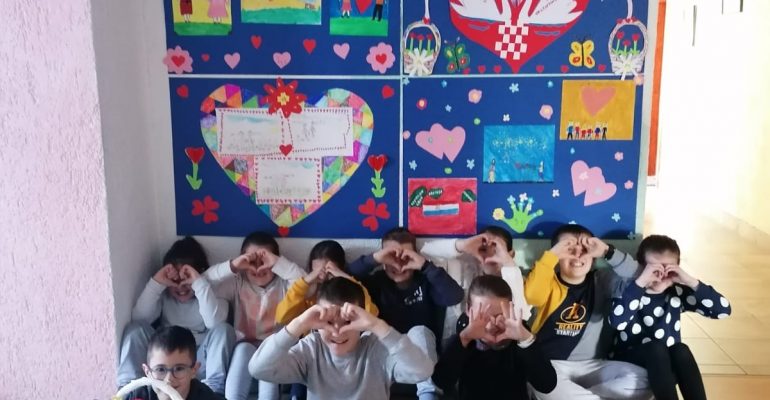 Povodom blagdana Sv. Valentina članovi likovne sekcije PŠ Crvenice priredili su malu školsku izložbu na temu: Ljubav u dječjem oku