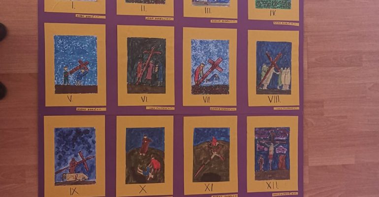Najmlađi crvenički učenici povodom ovogodišnje Korizme poklonili su nam najljepši dar, svih 14 postaja Križnog puta izrađenih tehnikom tuša i tempere.