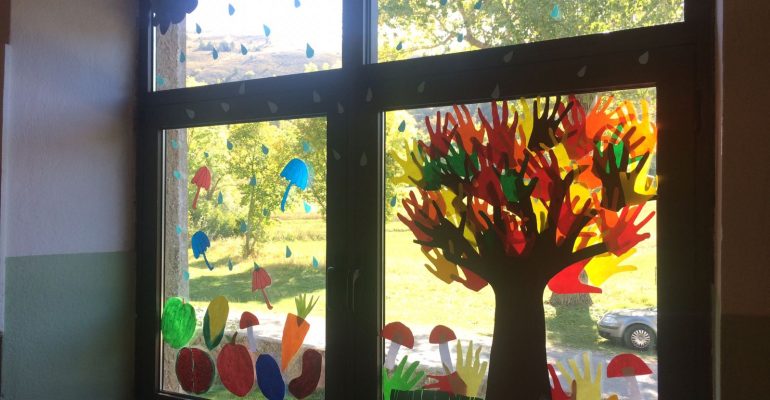 Ovih dana jesen u našem kraju suncem je okupana. Nastavni sadržaji upućuju i donose prave motive jeseni: oblake, kišu, opalo lišće, dozrele plodove…, a vrijeme prkosi nastavnom sadržaju šireći duge sunčeve ruke i vedrinu neba. Vrijedne ruke naših bukovičkih učiteljica i njihovih učenika pokazale su svoju vještinu uresivši svoja školska prozorska stakla.
